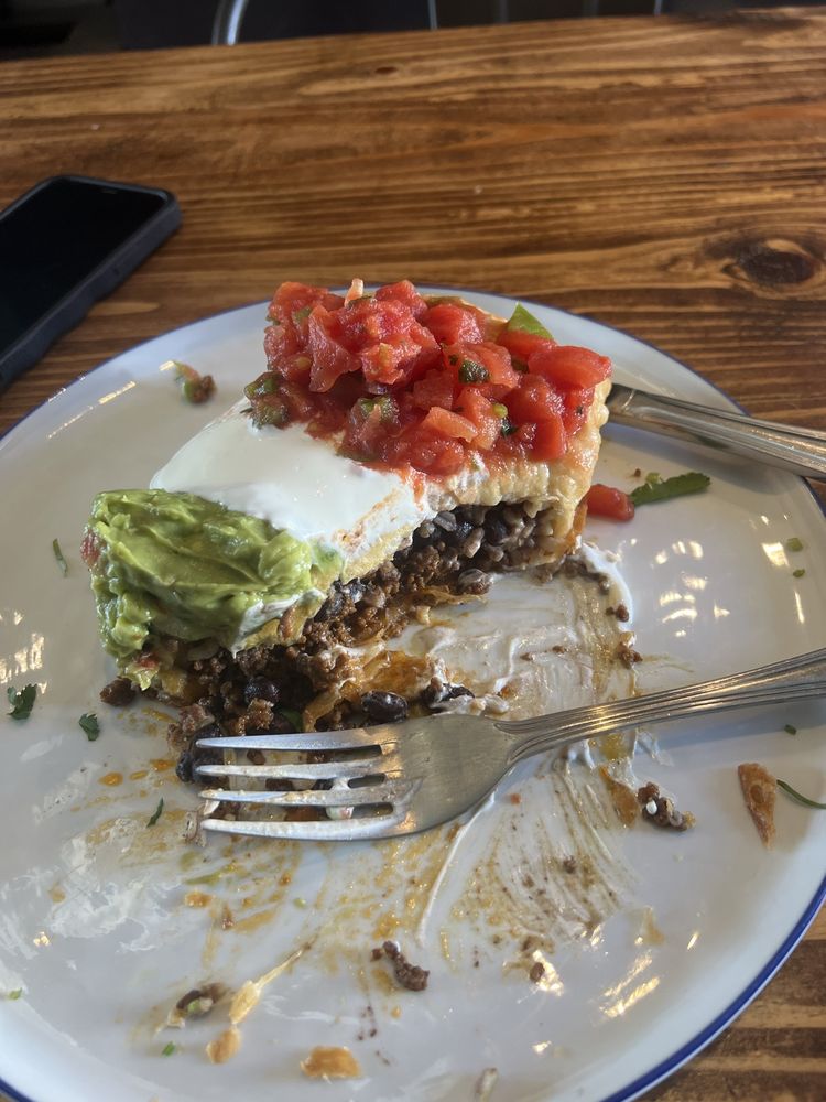 Lettuce, tomatoes, onion, cheese, avocado, cucumber, sour cream, & pico de gallo over a fried tortilla.