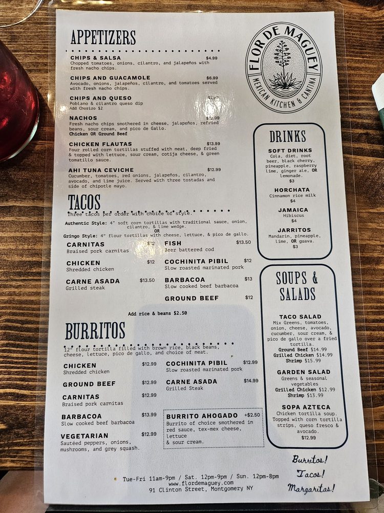 Welcome to FLOR DE MAGUEY, a delightful Mexican restaurant nestled at 91 Clinton St, Montgomery, NY. With its rustic charm and cozy seating for about 25, this eatery provides an intimate atmosphere ideal for enjoying exceptional cuisine.